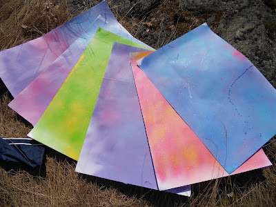 So this is the result, six sheets of sticker-paper sprayed and ready for the magic.